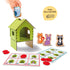 Contenu : 1 maisonnette en bois et 4 figurines d'animaux en bois (renard, lapin, hibou, raton laveur), 25 plaquettes imprimées recto-verso (13,5 x 19,5 cm), 150 jetons, 1 guide pédagogique des activités à télécharger.