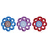 Balle en silicone souple Nûby™ dont les anneaux sont texturés. Préhension facilitée grâce à l'espace entre les anneaux qui permet d'y introduire les doigts.