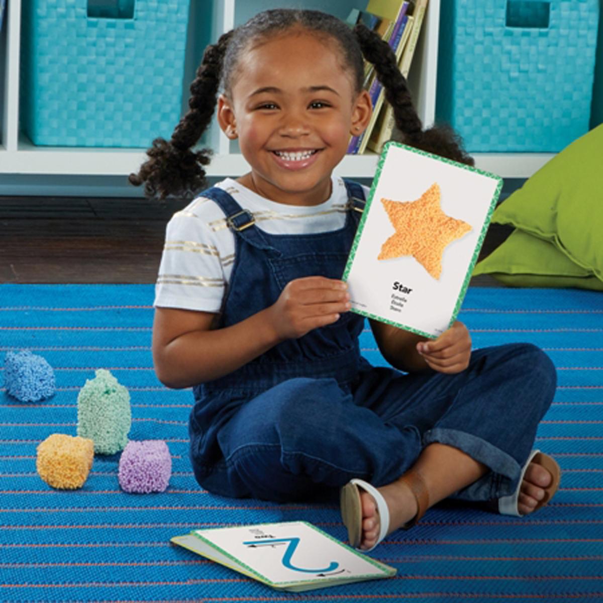 L'atelier consiste à placer simplement la pâte sensitive Playfoam® sur la fiche support en suivant la forme, pour s'exercer et apprendre en s'amusant.