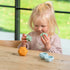 Leur système “twist-to-open” permet d’ouvrir chaque boule en la tournant : on peut ainsi les remplir (ex. graines sèches, perles) pour ajouter une dimension auditive au jeu. Idéal pour stimuler le tactile, l’auditif et le visuel, et pour développer la motricité fine (pince, pression, dissociation des doigts).