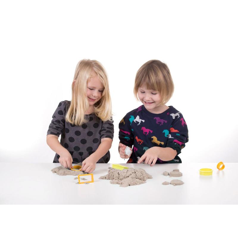 Ce sable à la texture étonnante est composé à 98% de sable naturel. Il est fluide lorsqu'il s'écoule et très compact lorsqu'on le moule.